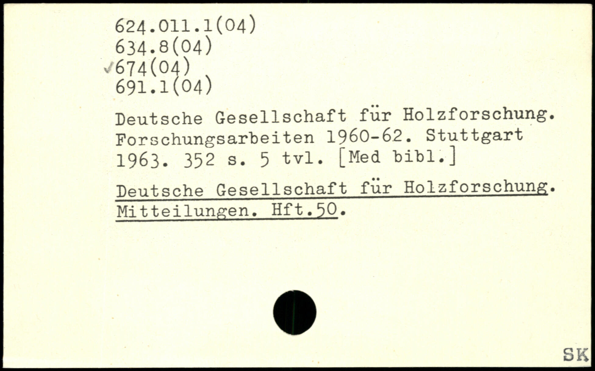 Deutsche Gesellschaft für Holzforschung. Forschungsarbeiten 1960-62.