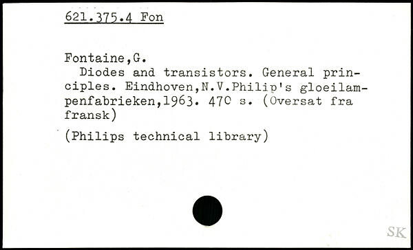 Diodes and transistors. General principles. Eindhoven,N.V.Philip's gloeilam-penfabrieken,1963. 47C s. (Oversat fra fransk)