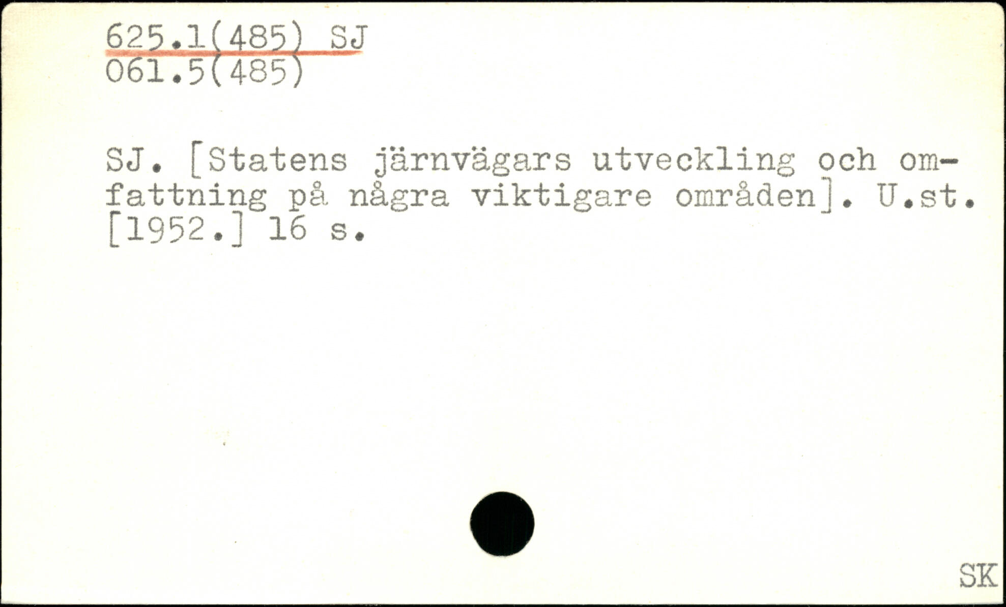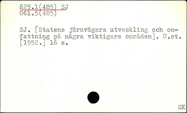 SJ. [Statens järnvägars utveckling och omfattning på några viktigare områden i. U.st. [1952.]