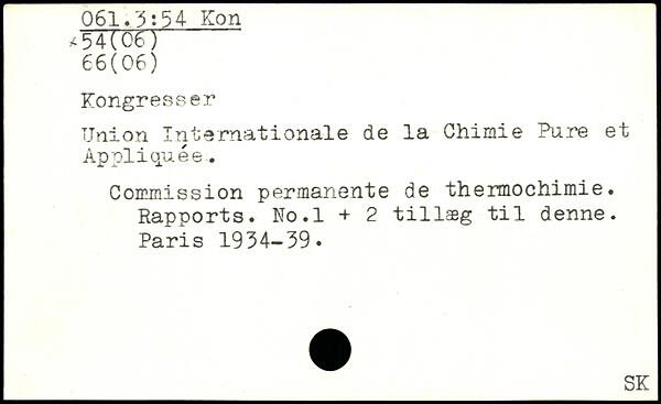 Union Internationale de la Chimie Pure et Appliquée. Commission permanente de thermochimie. Rapports. No.l + 2 tillaeg til denne.