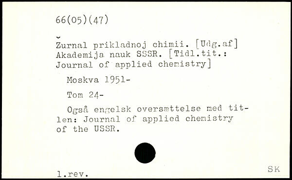 Zurnal prikladnoj chimii. [Udg.af] Akademija nauk SSSR. [Tidl.tit.: Journal of applied chemistry]
