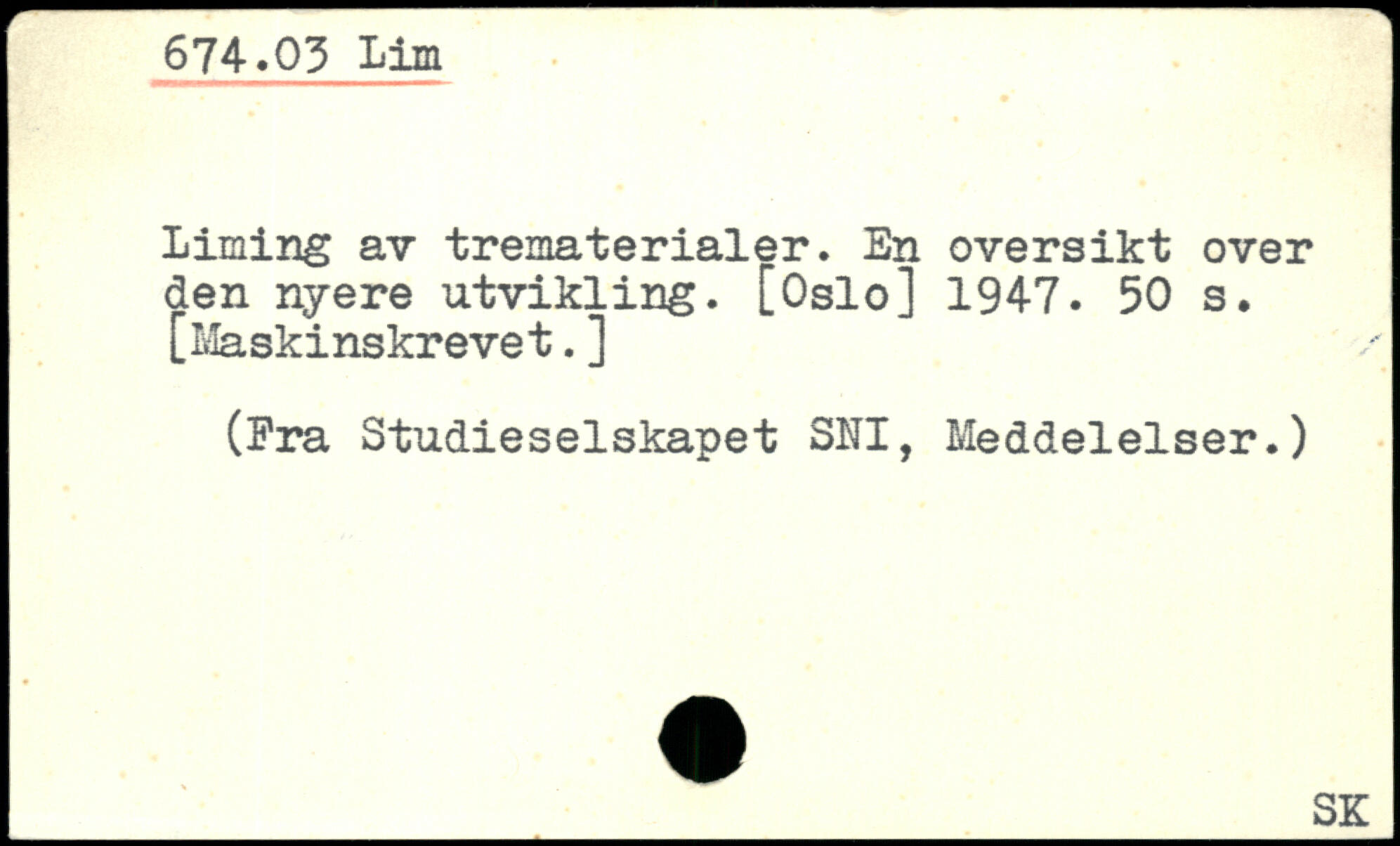 Liming av trematerialer. En oversikt over den nyere utvikling. [Oslo] 1947.