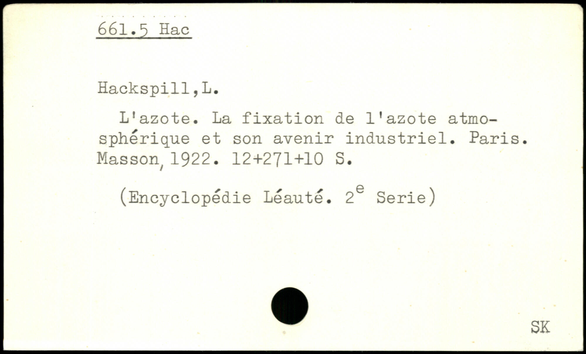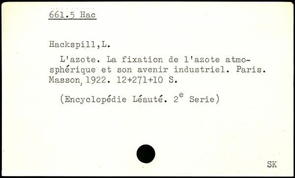 L'azote. La fixation de l'azote atmosphérique et son avenir industriel. Paris. Masson 1922.