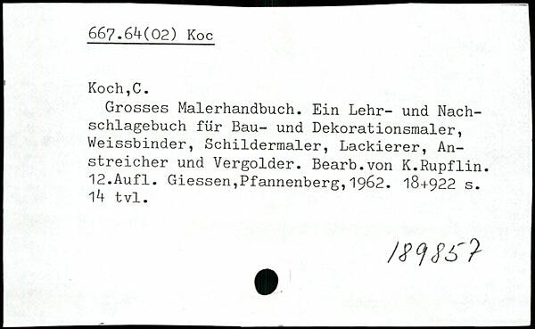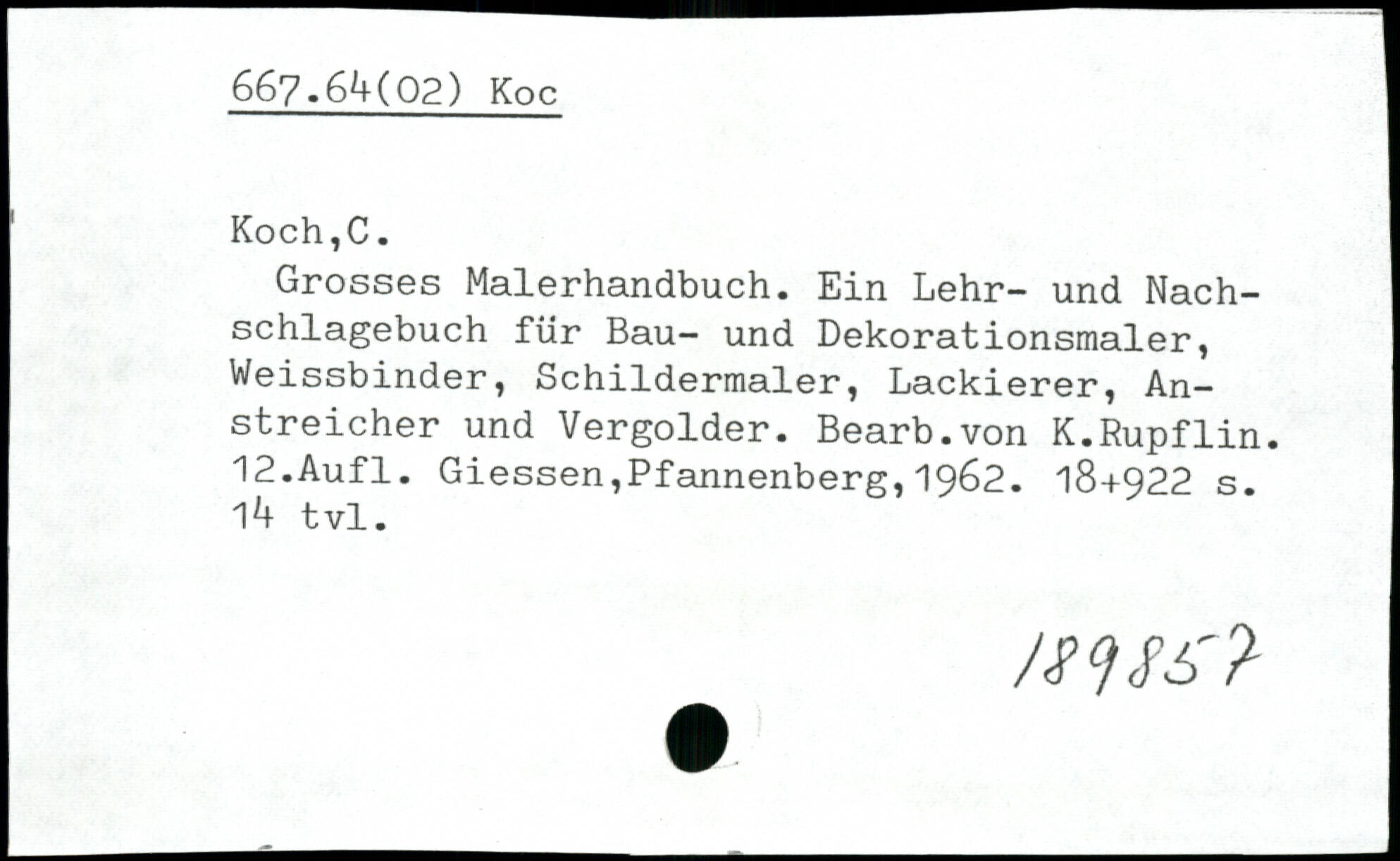 Grosses Malerhandbuch. Ein Lehr- und Nach-schlagebuch für Bau- und Dekorationsmaler, Weissbinder, Schildermaler, Lackierer, Anstreicher und Vergolder. Bearb.von K.Rupflin.