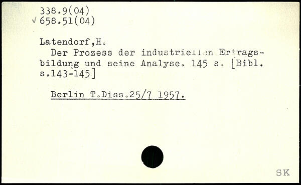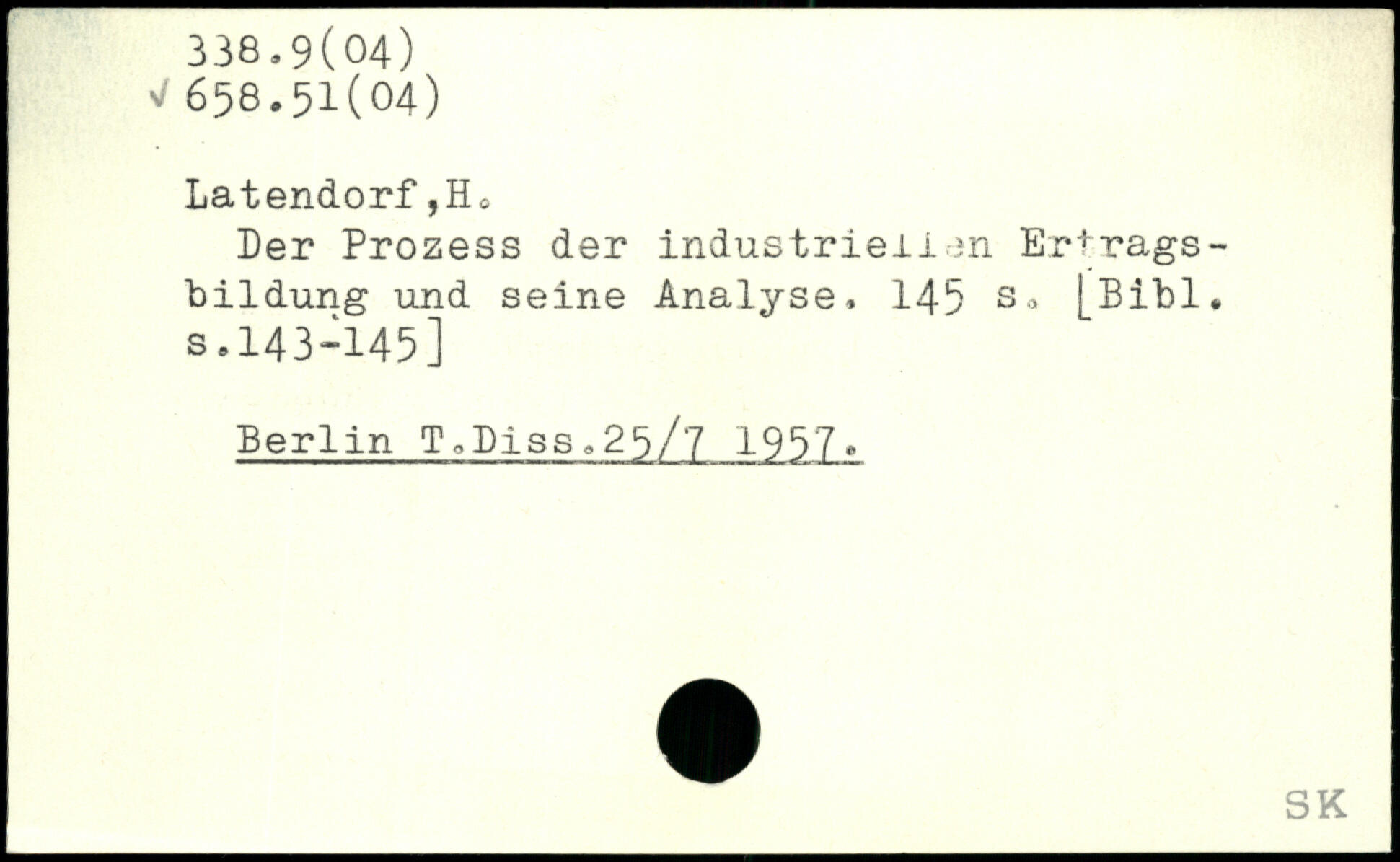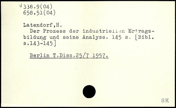 Der Prozess der industriellen Ertrags-bildung und seine Analyse