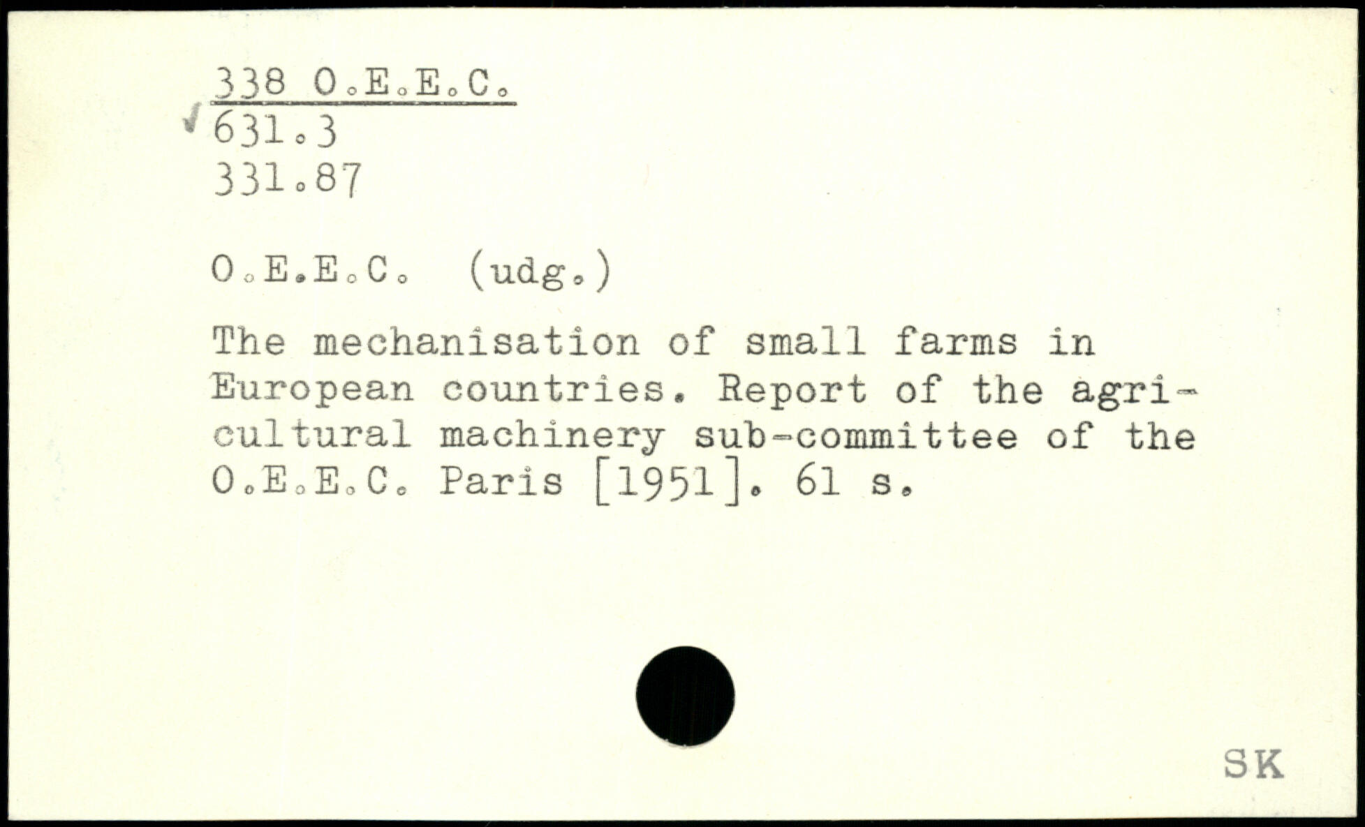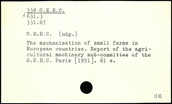 0oE.EcCo (udg9) The mechanisation of small farms in European countries. Report of the agricultural machinery sub-committee of the 0,EoEoCo