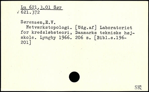 Netværkstopologi. [Udg.af] Laboratoriet for kredsløbsteori, Danmarks tekniske højskole. Lyngby 1966.