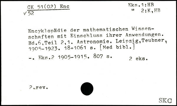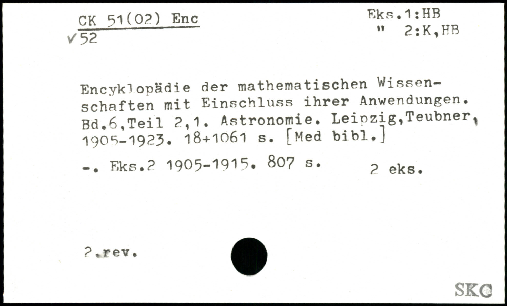 VT^- " 2 : K, HB EncyklopSdie der mathematischen Wissenschaften mit Einschluss ihrer Anwendungen.
