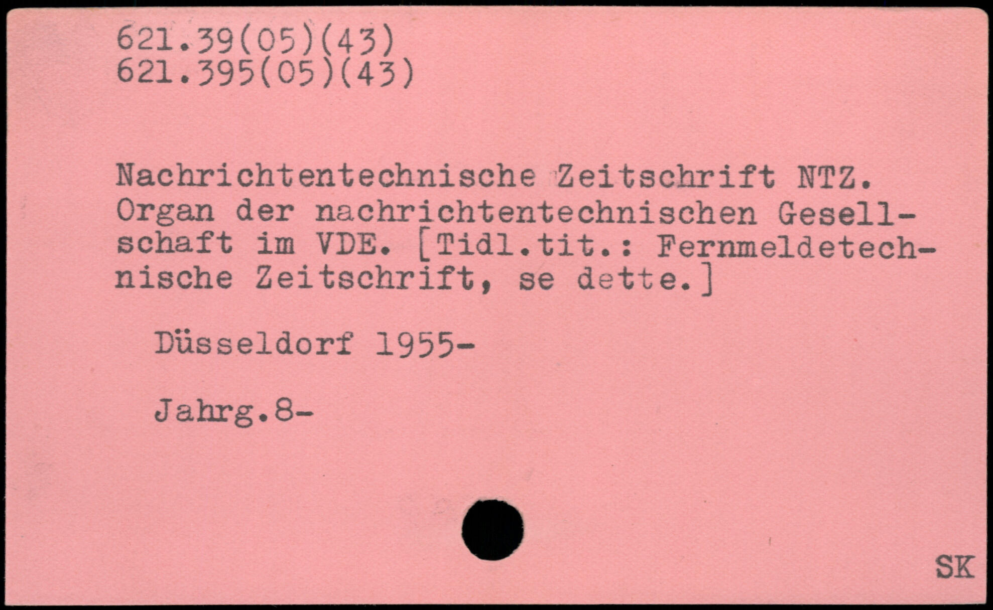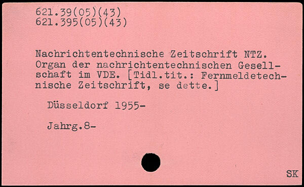 Organ der nachrichtentechnischen Gesellschaft im VDE. [Tidl.tit.: Fernmeldetech— nische Zeitschrift, se dette.] Düsseldorf 1955- Jahrg.8- w SK