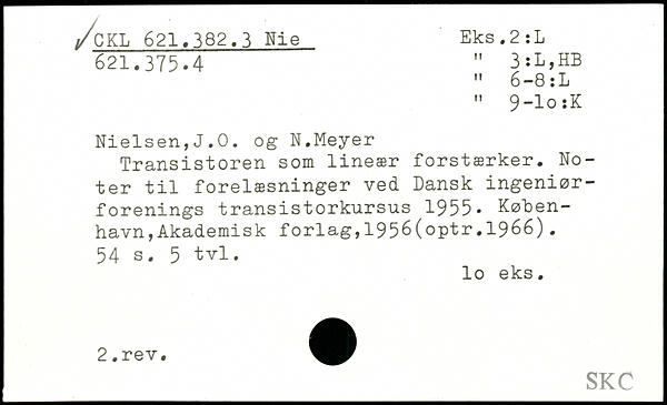 Transistoren som lineær forstærker. Noter til forelæsninger ved Dansk ingeniørforenings transistorkursus 1955.