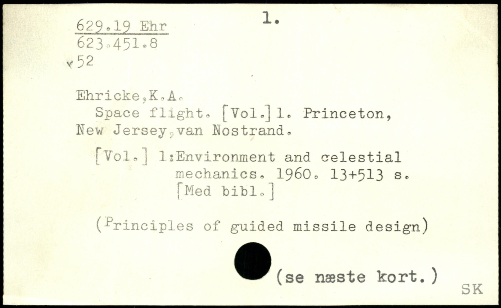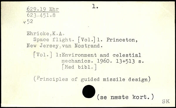 Space flight,. [Vol,] 1. Princeton, New Jersey.,van Nostrand, fVo.loj Is Environment and celestial mechanics, 1960