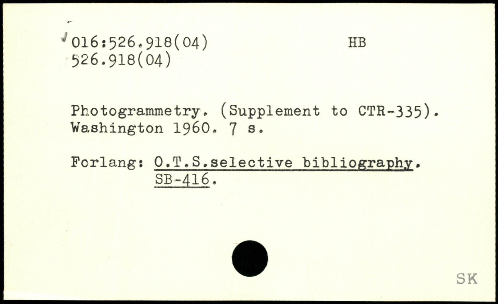 Photogrammetry. (Supplement to CTR-335)