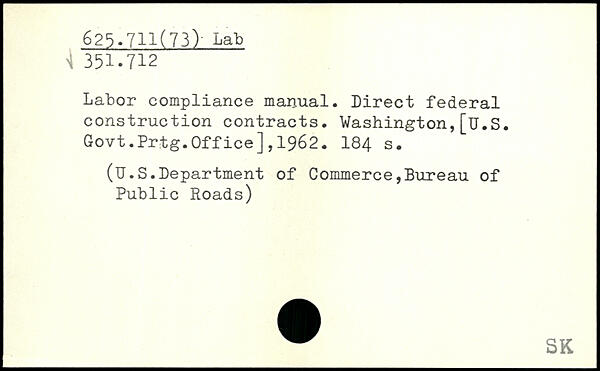 Labor compliance manual. Direct federal construction contracts. Washington,[u.S. Govt.Prtg.Office],1962. I