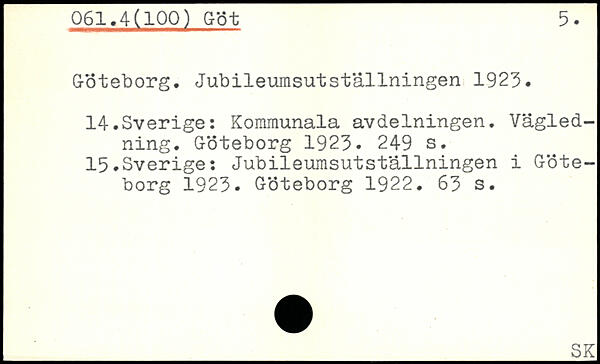 Göteborg. Jubileumsutställningen 1923. 14.Sverige: Kommunala avdelningen. Vägledning. Göteborg 1923.