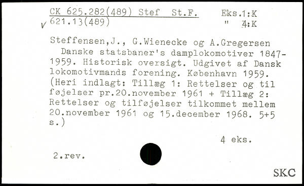 Steffensen,J., G.Wienecke og A.Gregersen Danske statsbaner's damplokomotiver 1847-1959. Historisk oversigt. Udgivet af Dansk lokomotivmands forening.