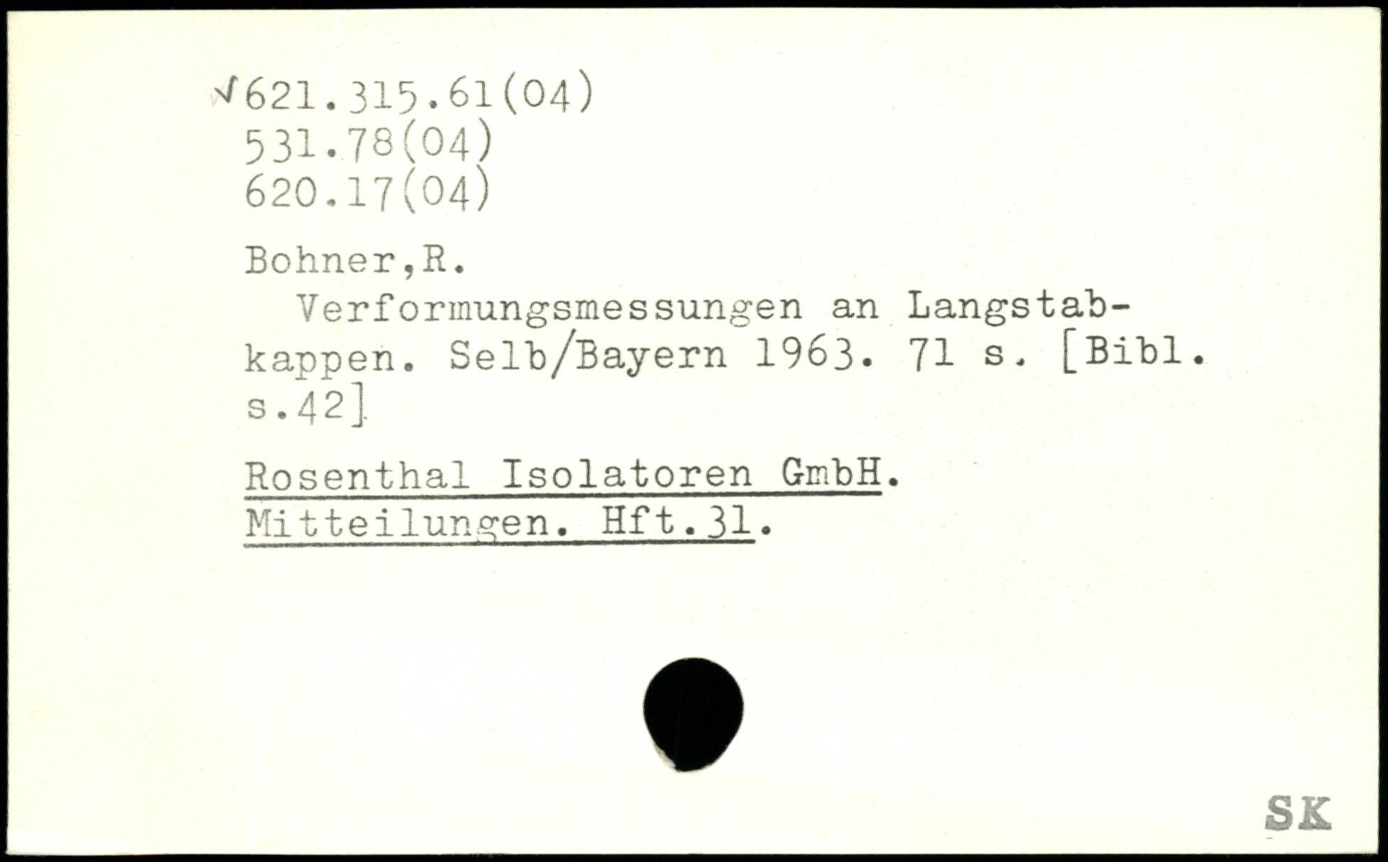 Verformungsmessungen an Langstah-kappen. Selb/Bayern 1963.