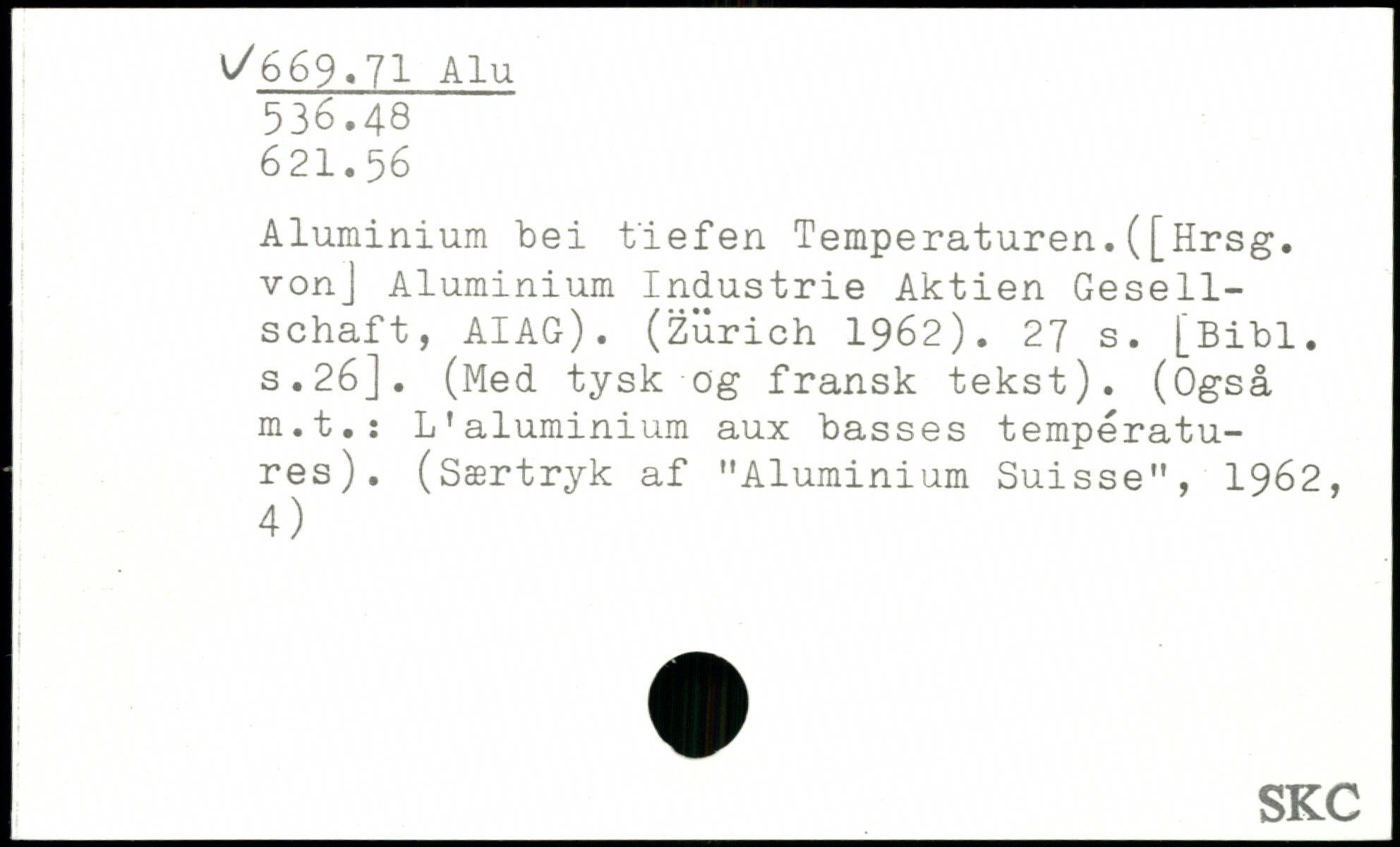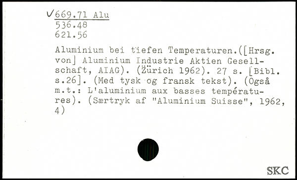 Aluminium bei tiefen Temperaturen.([Hrsg, vonj Aluminium Industrie Aktien Gesellschaft, AIAG). (Zürich 1962).