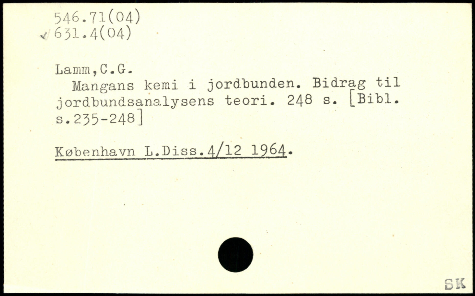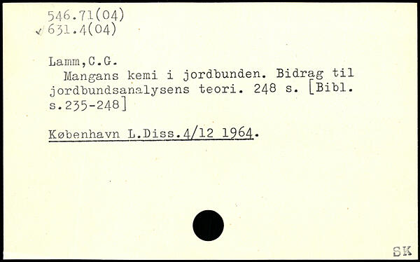 Mangans kemi i jordbunden. Bidrag til jordbundsanalysens teori.