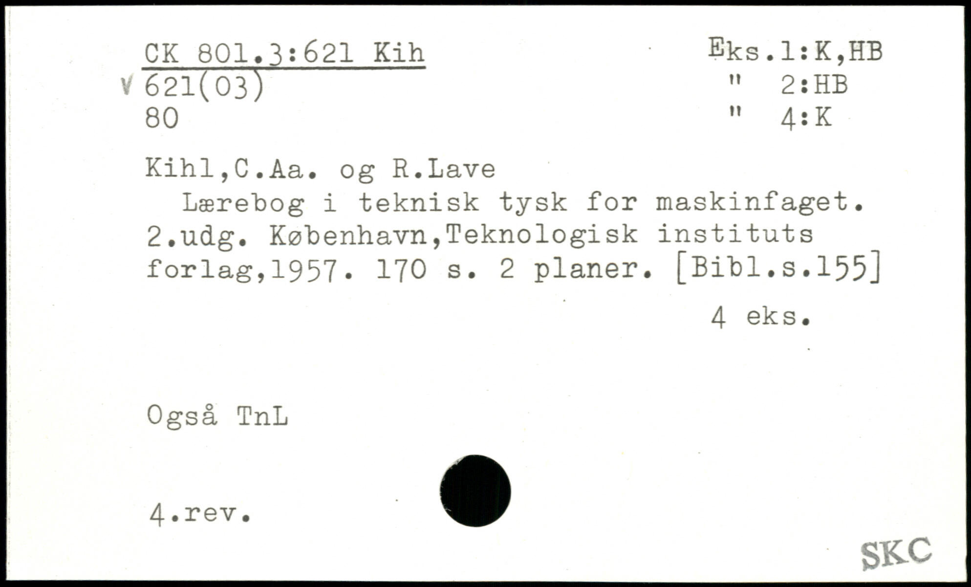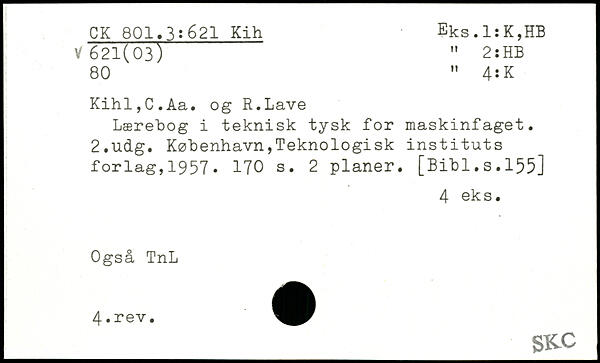 Kihl,C.Aa. og R.Lave Lærebog i teknisk tysk for maskinfåget.