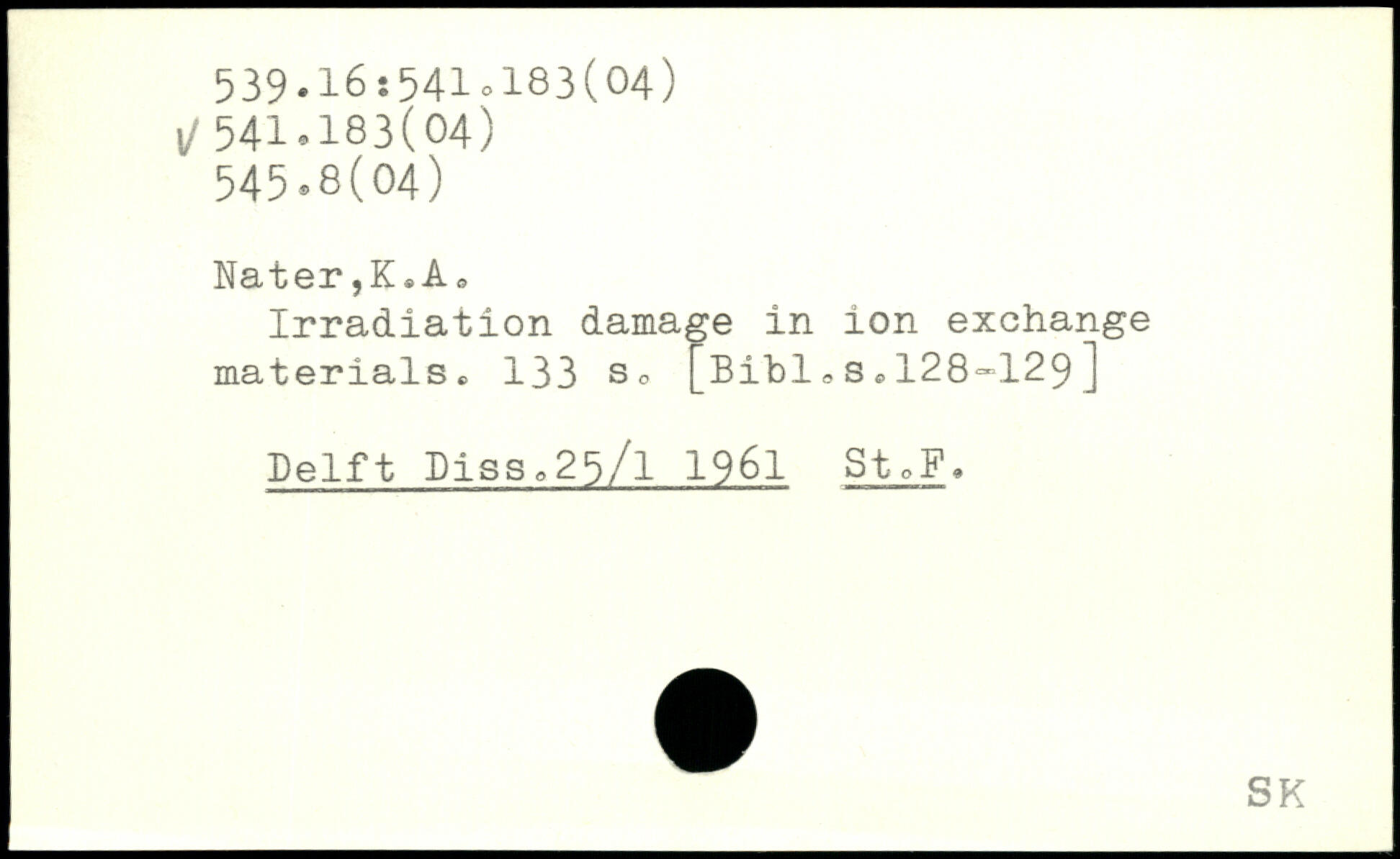 Nater,K.Ae Irradiation damage in ion exchange materials