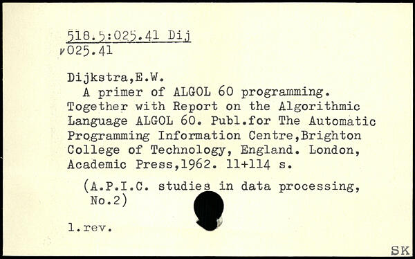 A primer of ALGOL 60 programming. Together with Report on the Algorithmic Language ALGOL 60. Publ.for The Automatic Programming Information Centre,Brighton College of Technology, England.