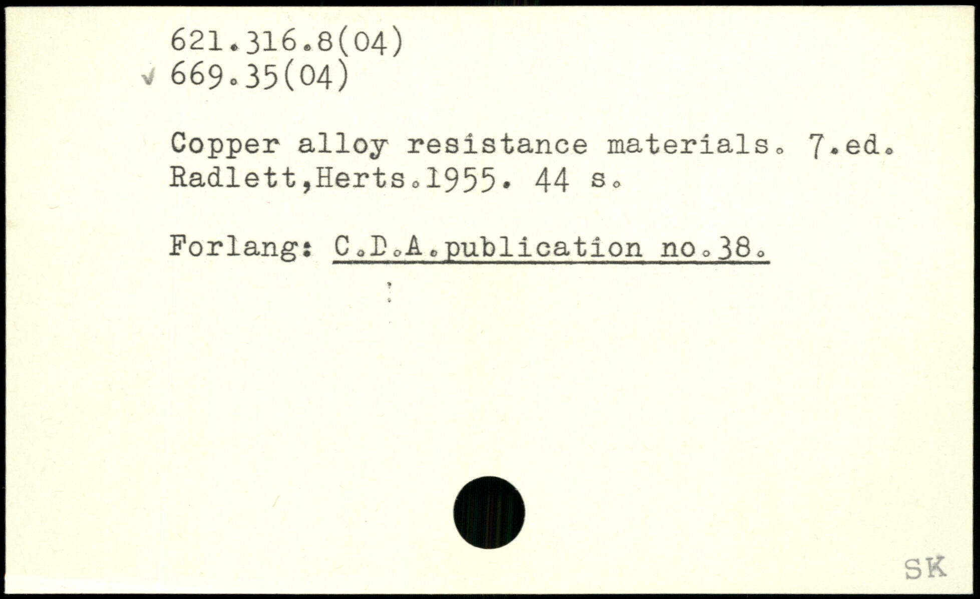 Copper alloy resistance materials,, 7,ecL Radlett,Hertso1955. 44 Forlang: C0HPA,publication no0380