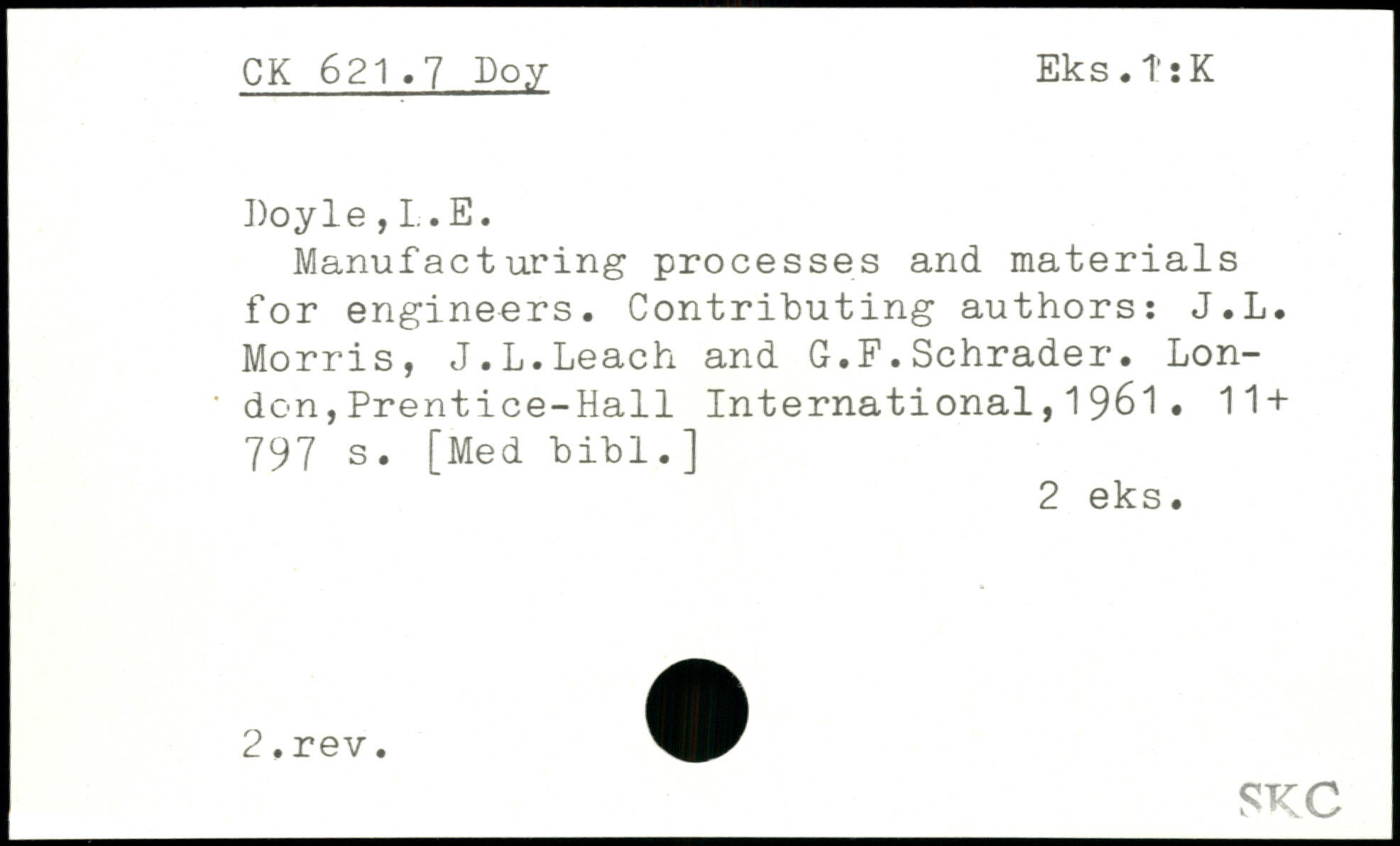 Manufacturing processes and materials for engineers. Contributing authors: J.L. Morris, J.L.Leach and G.F.Schrader.