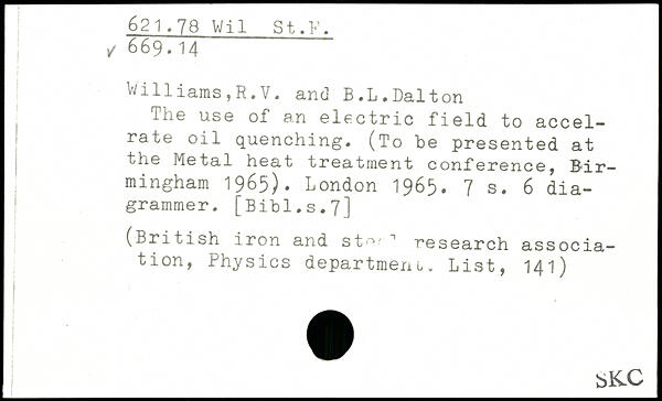 The use of an electric field to accel-rate oil quenching. (To be presented at the Metal heat treatment conference, Birmingham 1965).
