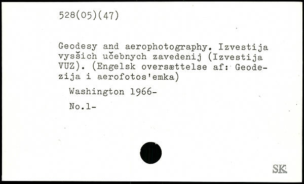 Geodesy and aerophotography. Izvestija vyssich ucebnych zavedenij (izvestija VUZ). (Engelsk oversættelse af: Geode-zija i aerofotos'emka)