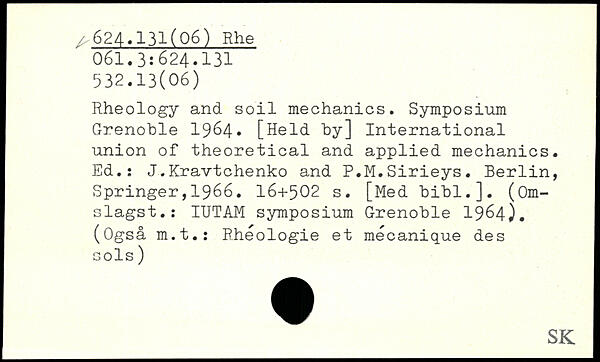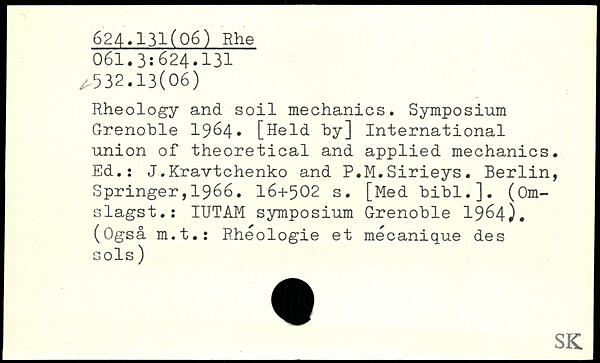 Rheology and soil mechanics. Symposium Grenoble 1964. [Held by] International union of theoretical and applied mechanics. Ed.: J.Kravtchenko and P.M.Sirieys.