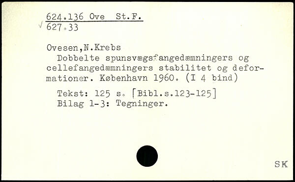 Ovesen,N.Krebs Dobbelte spunsvægsfangedæmningers og cellefangedæmningers stabilitet og deformationer.