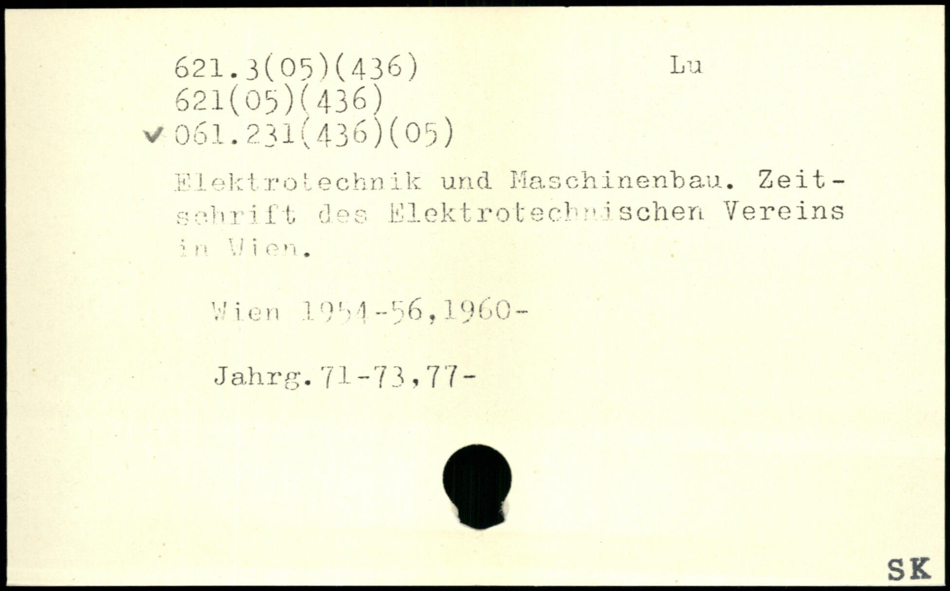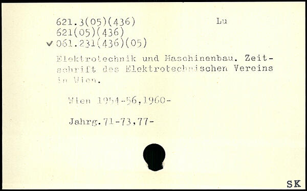 Elekt rotechnik und Maschinenbau. Zeit -c; ..i, r i f t 0 e s E1 e k t r o t e c 1 'rise h en Vereins i n Uio'i. VJ i en IQ'vl -96,1960-Jahrg.71-73,77-
