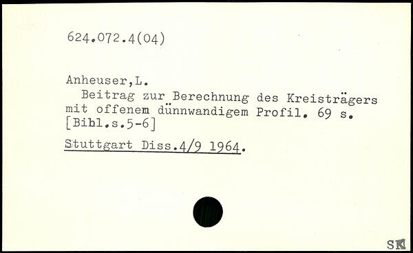 Beitrag zur^Berechnung des Kreisträgers mit offenem dünnwandigem Profil.