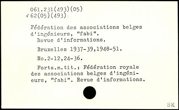 Fédération des associations belges d'ingénieurs, "fabi". Revue d’informations.