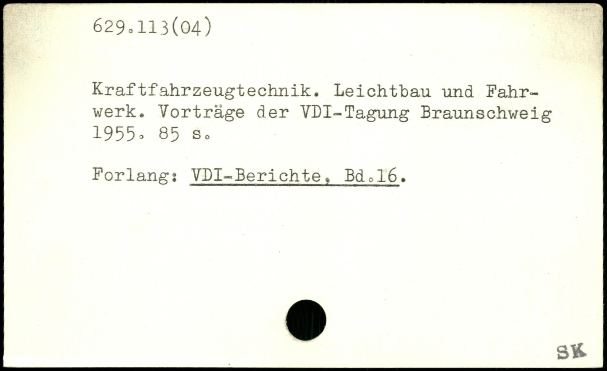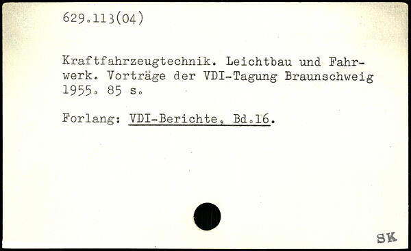Kraftfahrzeugtechnik. Leichthau und Fahrwerk. Yorträge der YDI-Tagung Braunschweig 1955