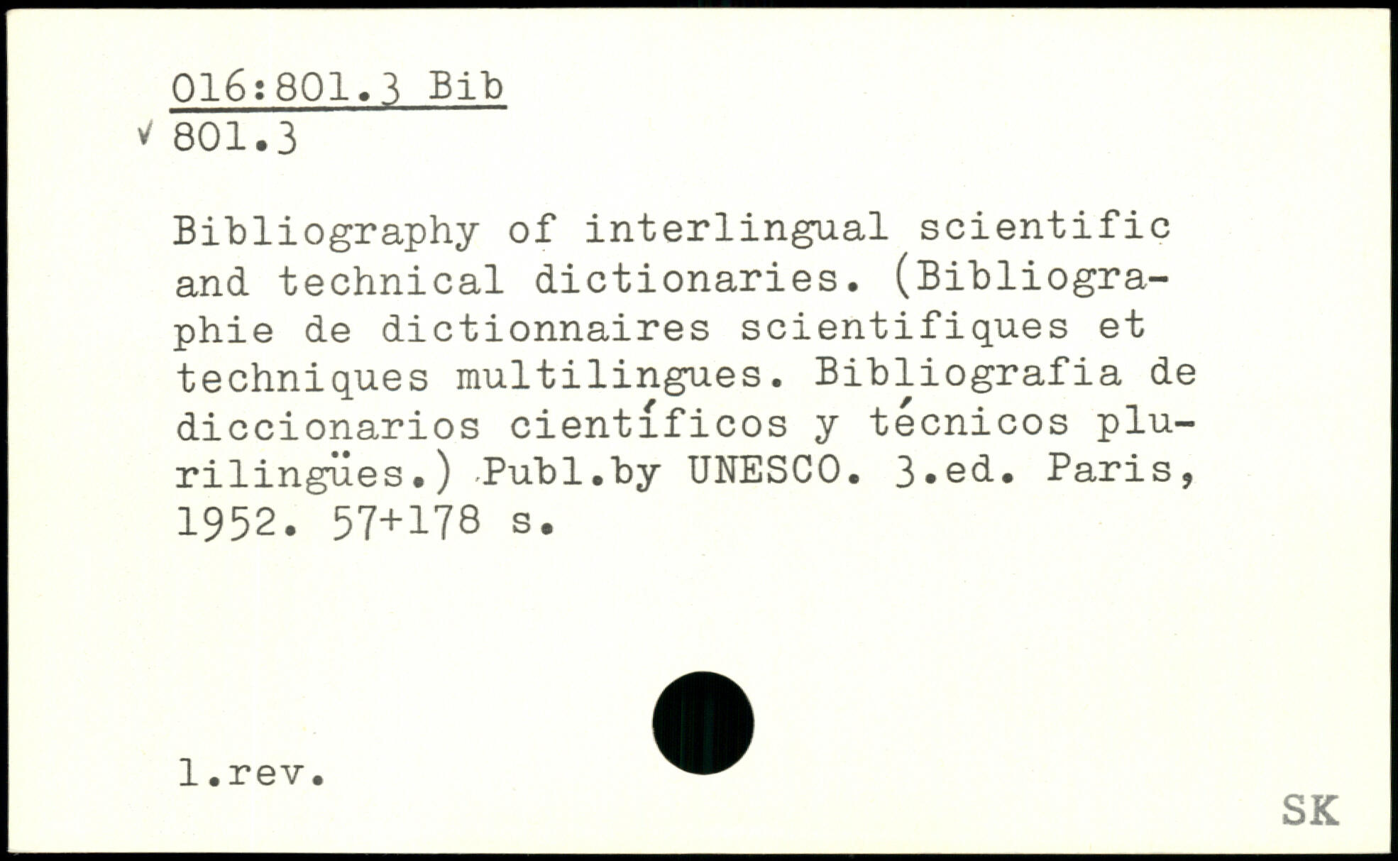 Bibliography of interlingual scientific and technical dictionaries. (Bibliographie de dictionnaires scientifiques et techniques multilingues. Bibliografia de diccionarios cientificos y técnicos plu-rilingûes.) -