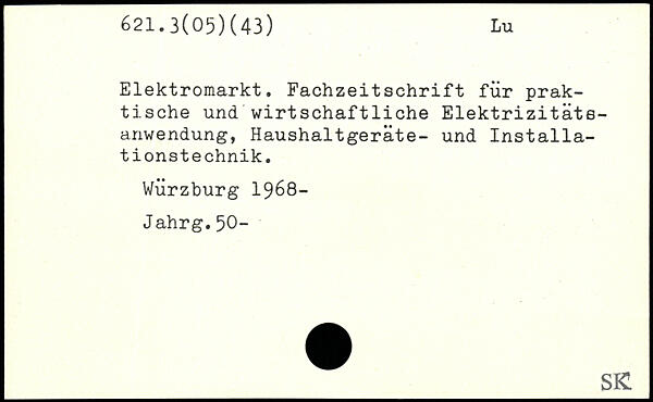 Elektromarkt. Fachzeitschrift für praktische und wirtschaftliche Elektrizitätsanwendung, Haushaltgeräte- und Installationstechnik. Würzburg 1968- Jahrg.50-