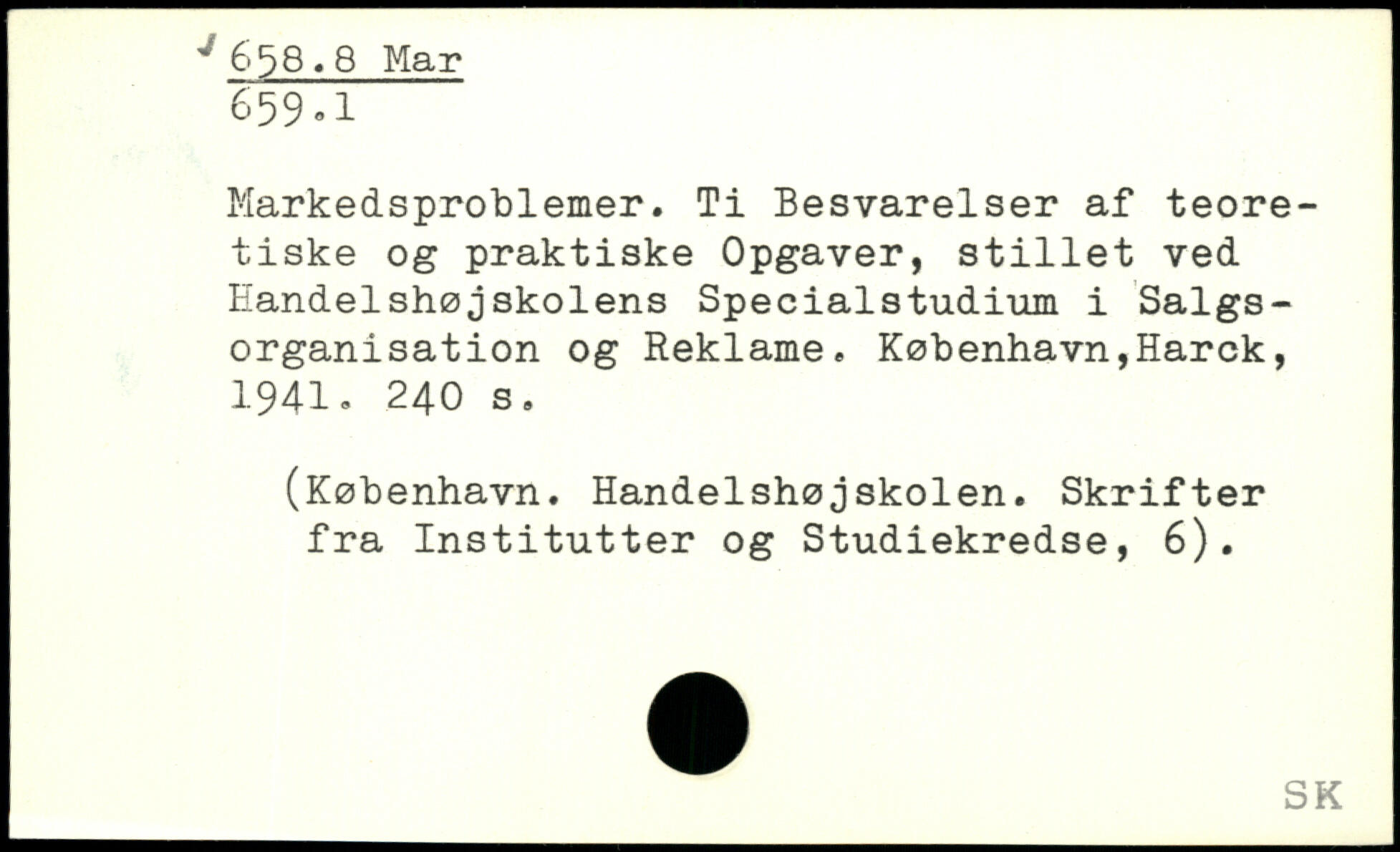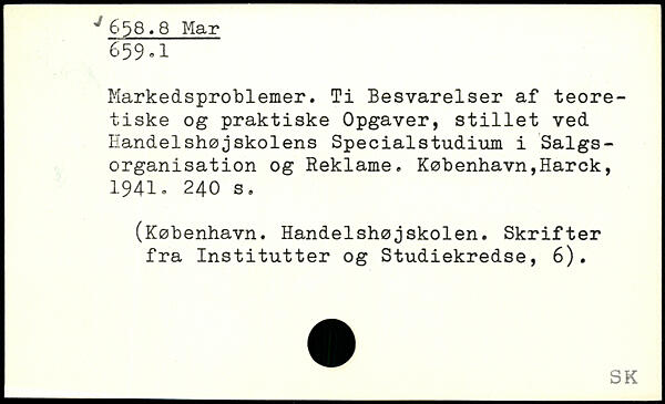 Markedsproblemer. Ti Besvarelser af teoretiske og praktiske Opgaver, stillet ved Handelshøjskolens Specialstudium i Salgsorganisation og Reklame.