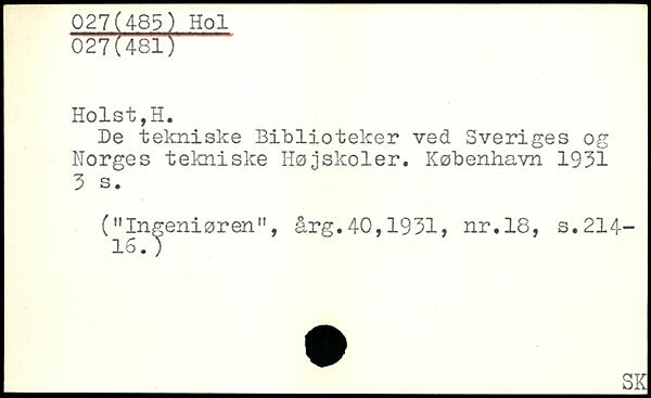De tekniske Biblioteker ved Sveriges og Norges tekniske Højskoler.