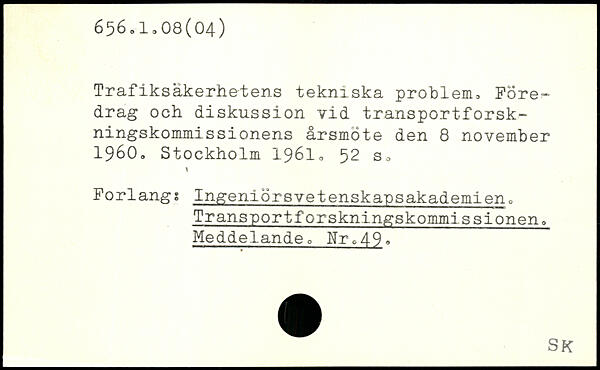 Trafiksäkerhetens tekniska problem. Föredrag och diskussion vid transportforsk-ningskommissionens årsmöte den 8 november 1960.