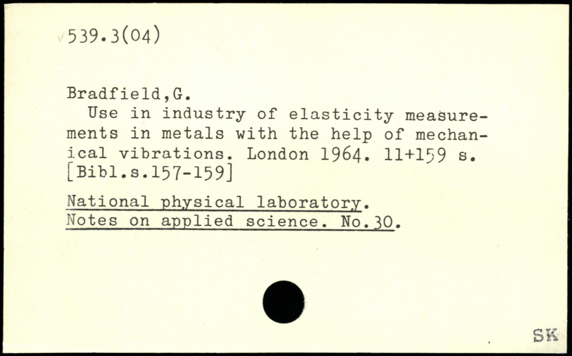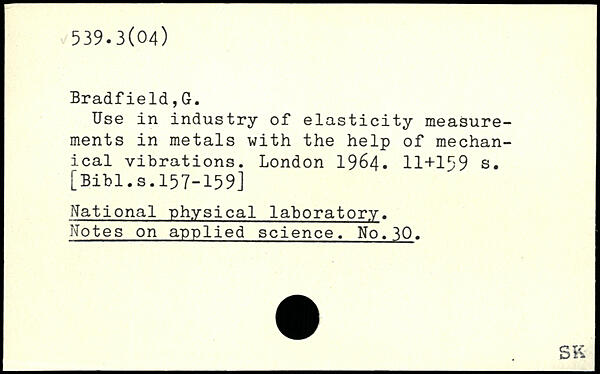 Use in industry of elasticity measurements in metals with the help of mechanical vibrations.