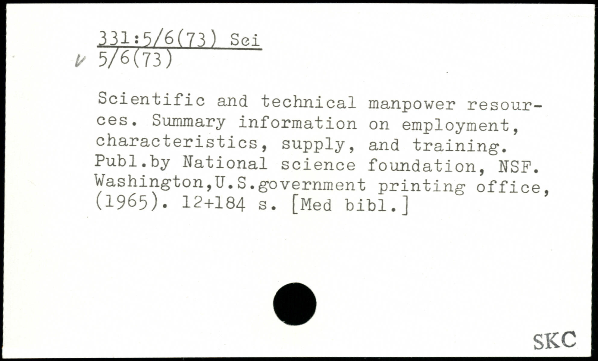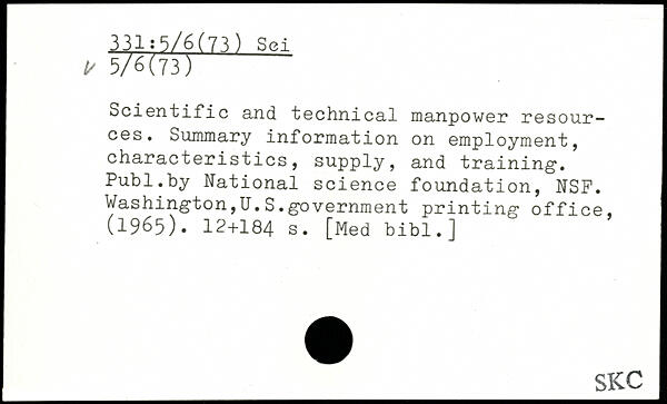 Scientific and technical manpower resources. Summary information on employment, characteristics, supply, and training1.