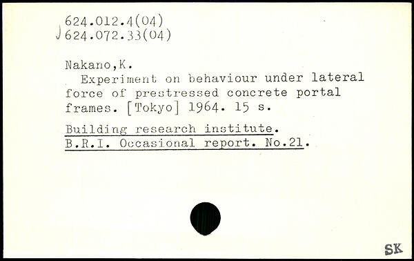 Experiment on behaviour under lateral force of prestressed concrete portal frames.