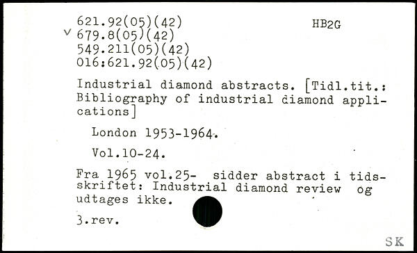 Industrial diamond abstracts. [Tidl.tit.: Bibliography of industrial diamond applications ]