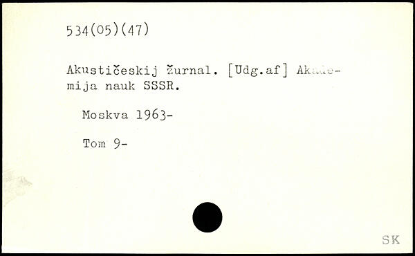 Akusticeskij zumal. [Udg.af] Akademi ja nauk SSSR.