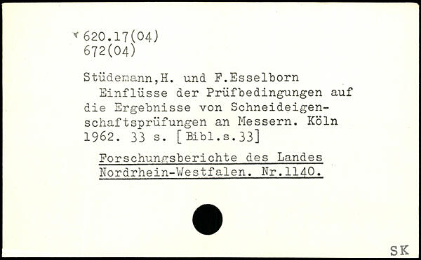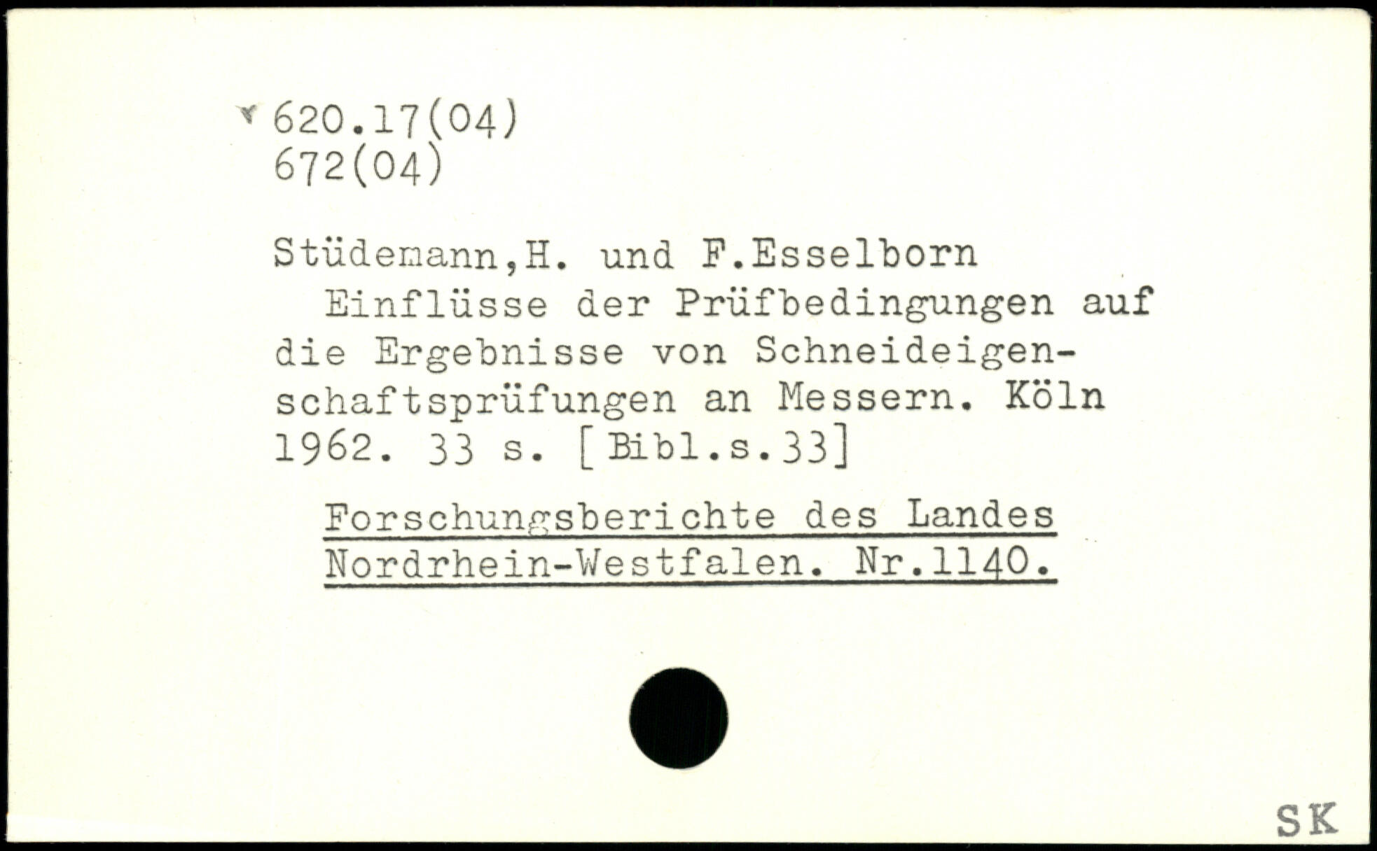 Einflüsse der Prüfbedingungen auf die Ergebnisse von Schneideigenschaf tsprüf ungen an Messern.