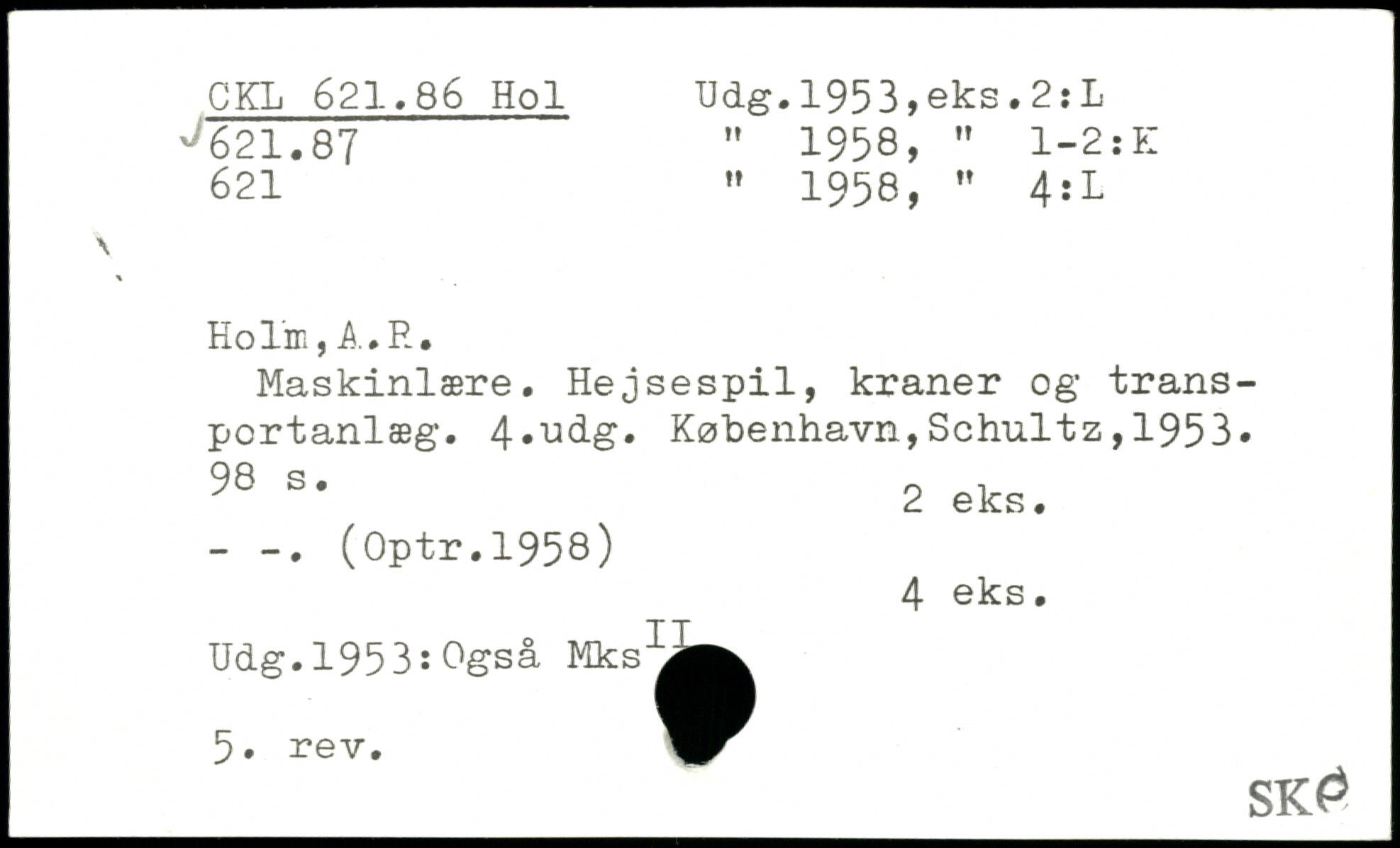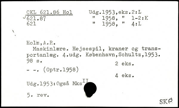 Maskinlære. Hejsespil, kraner og transportanlæg. 4.u<lio.