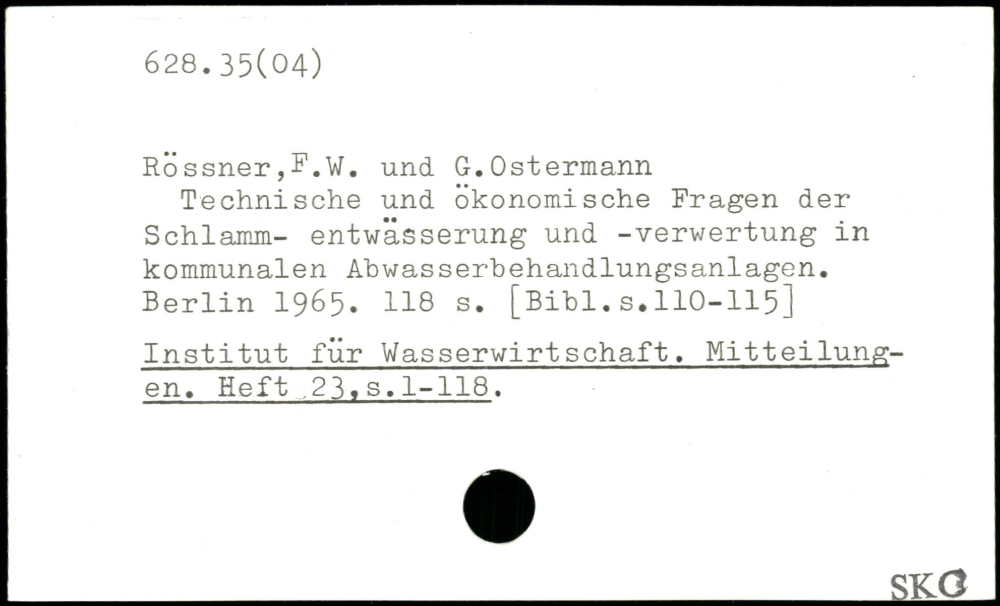 Rossner,F.w. und G. Ostermann Technische und Ökonomische Fragen der Schlamm- entwässerung und -Verwertung in kommunalen Abwasserbehandlungsanlagen.