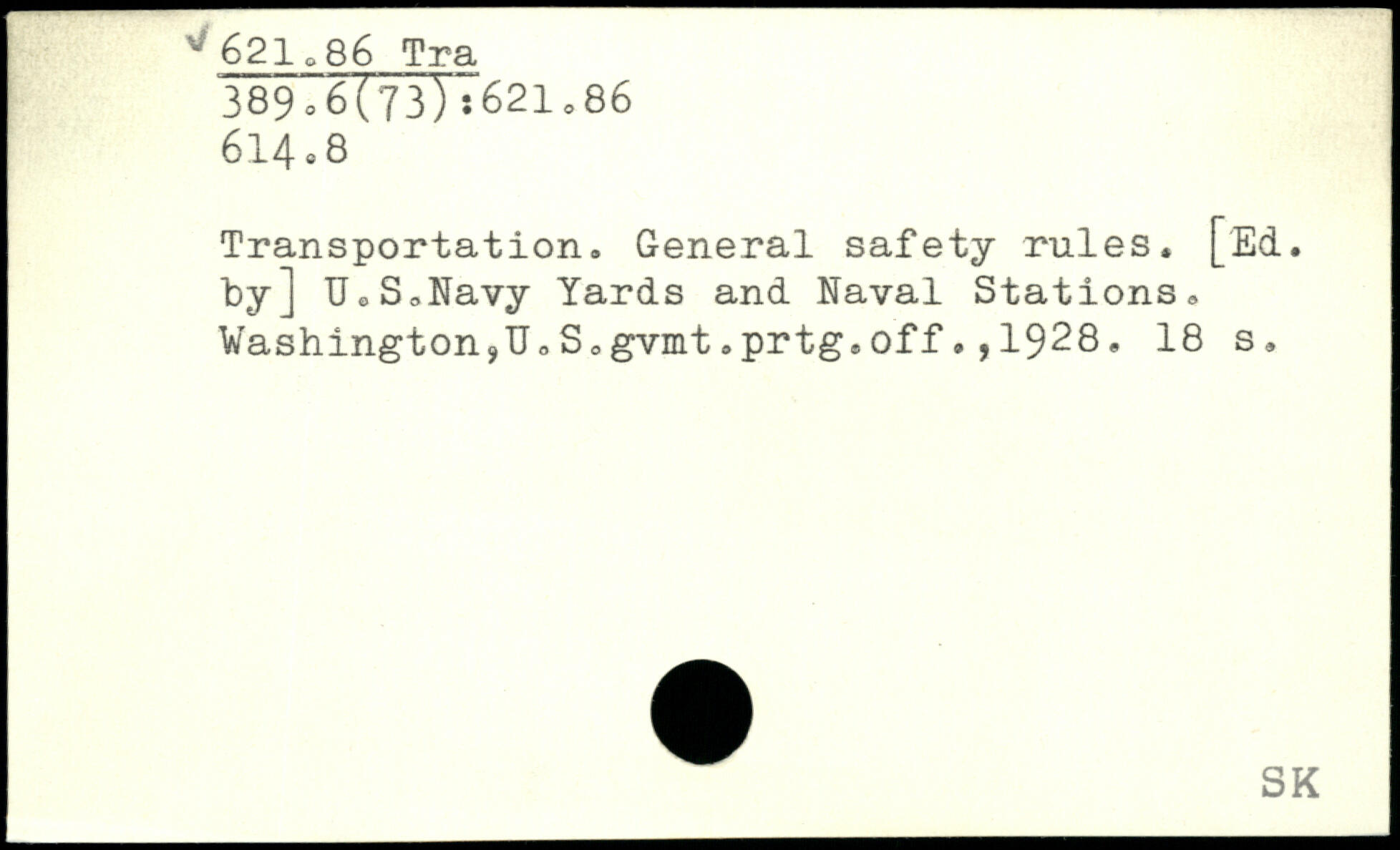 Transportation. General safety rules. ['Ed. "by] UoScNavy Yards and Naval Stations. Washington,IJ0S0gvmt.prtg.off. ,1928.