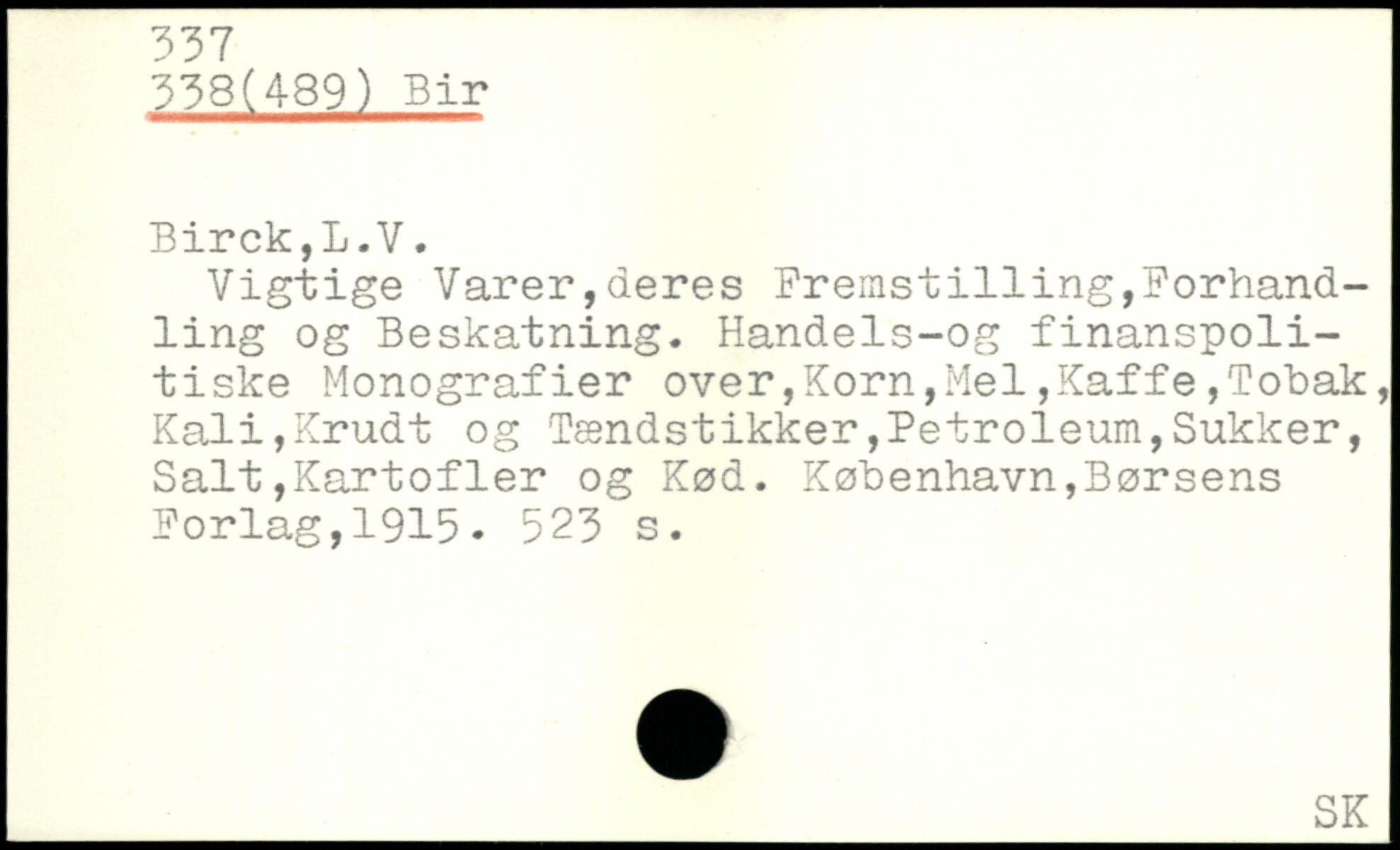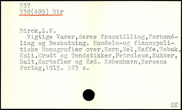 Vigtige Varer,deres Fremst1111ng,Forhandling og Beskatning. Handels-og finanspolitiske Monografier over,Korn,Mel,Kaffe,Tobak, Kali,Krudt og Tændstikker,Petroleum,Sukker, Salt,Kartofler og Kød.